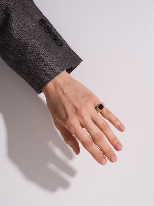 Red Agate Enamel Ring