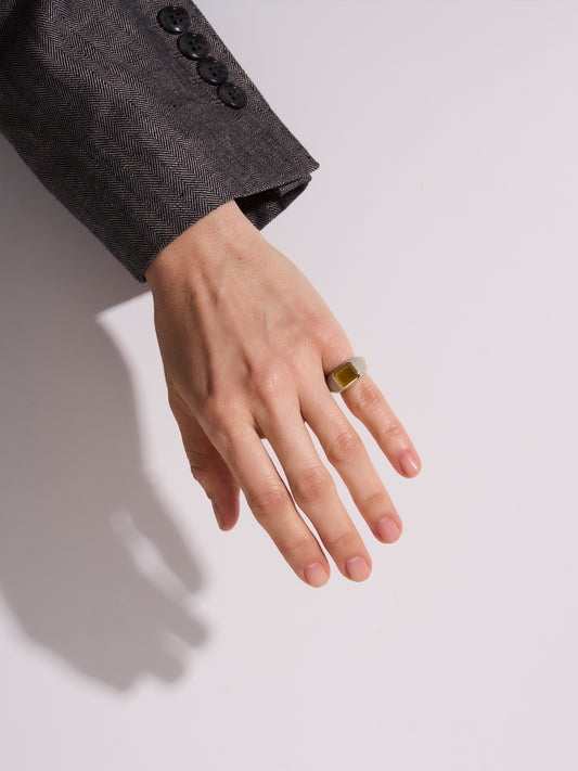 Yellow Agate Enamel Ring